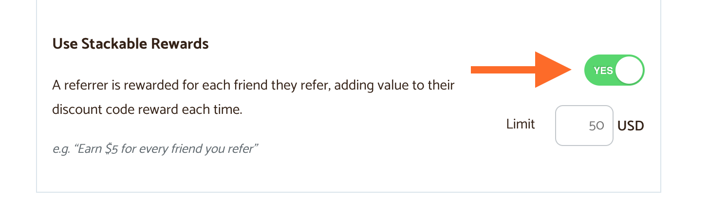 Use Stackable Rewards to encourage referrers to share your store more widely. Because they’ll be able to stack up their rewards, referrers send your store to more friends and share it more widely.